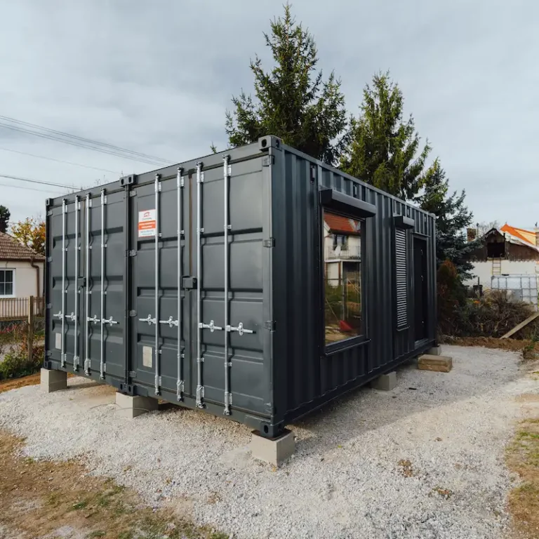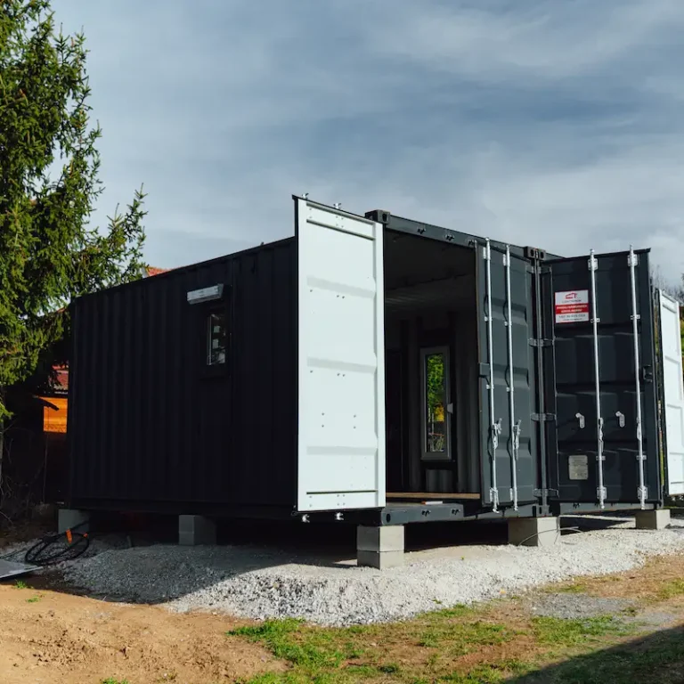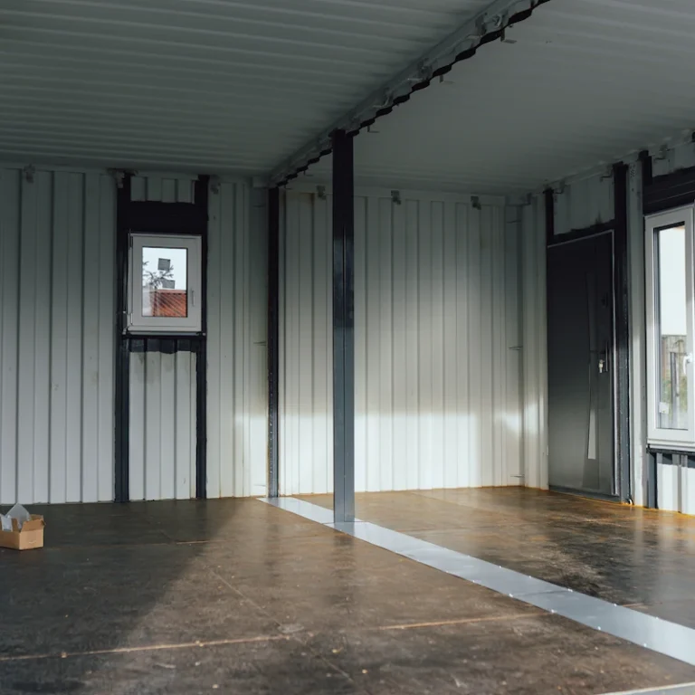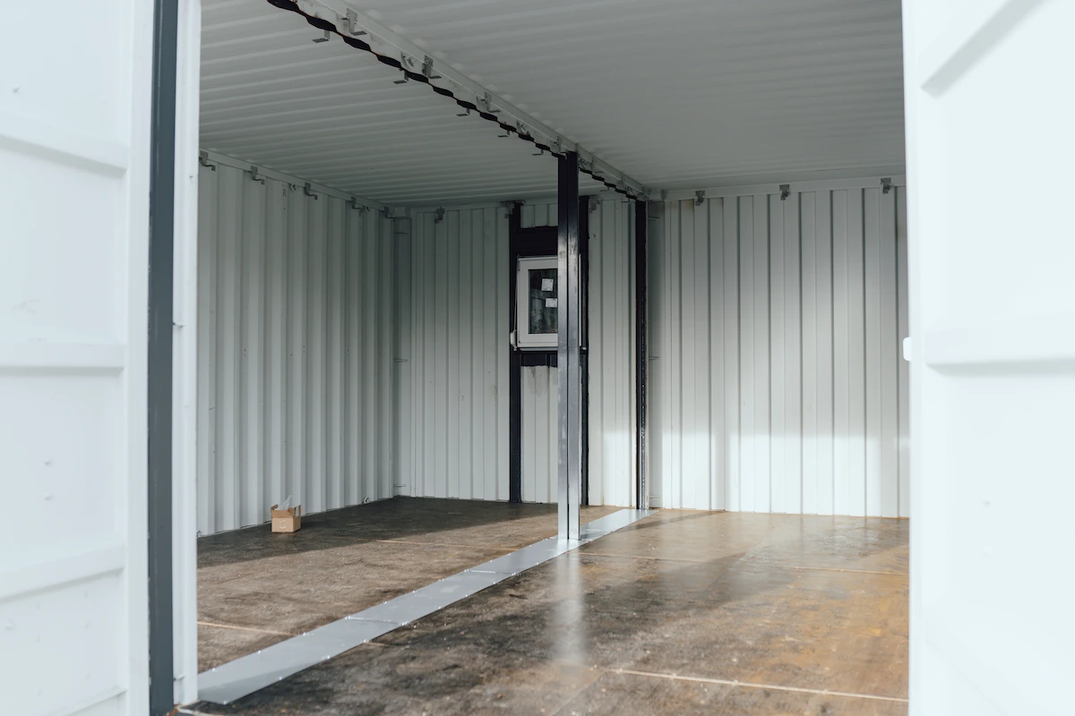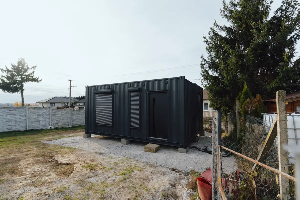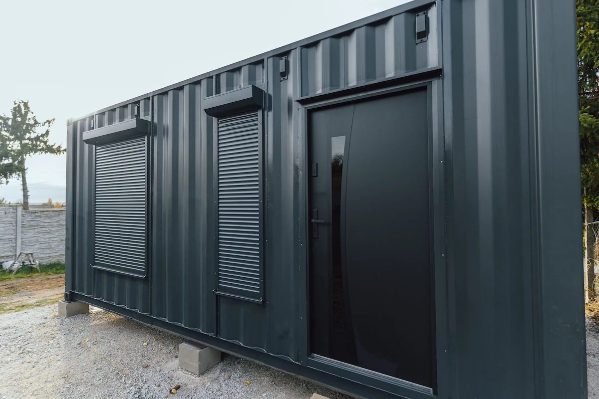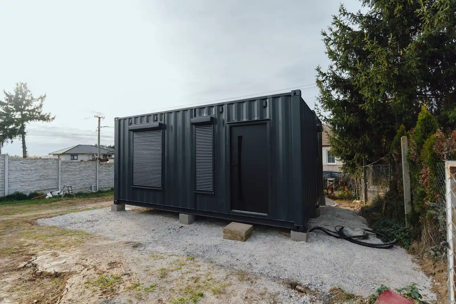 Kontejnery byly doplněny o nová okna, dveře a připravené úchyty pro montáž sádrokartonu. Majitel tak může jednoduchým způsobem dokončit interiér a přizpůsobit si jej pro rekreační nebo pracovní využití.