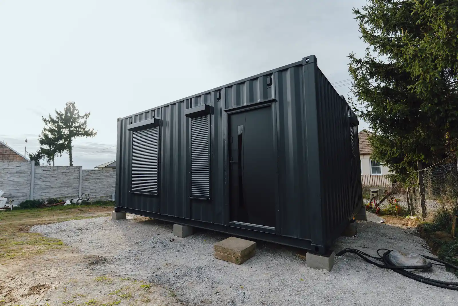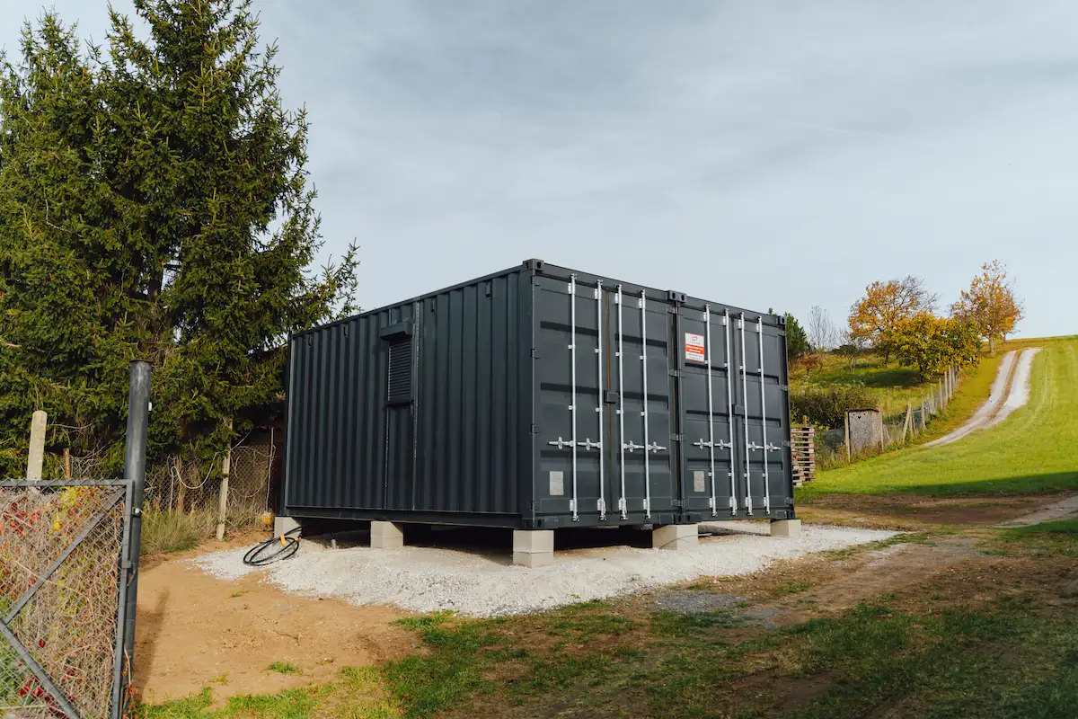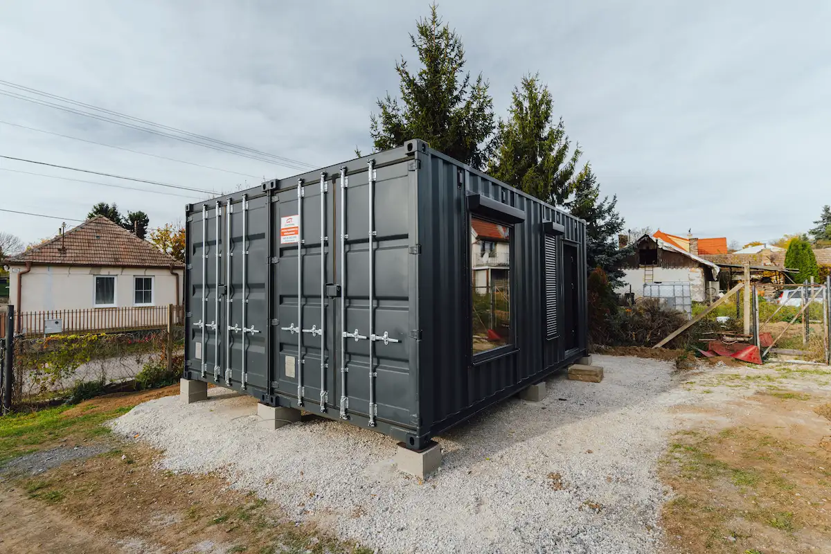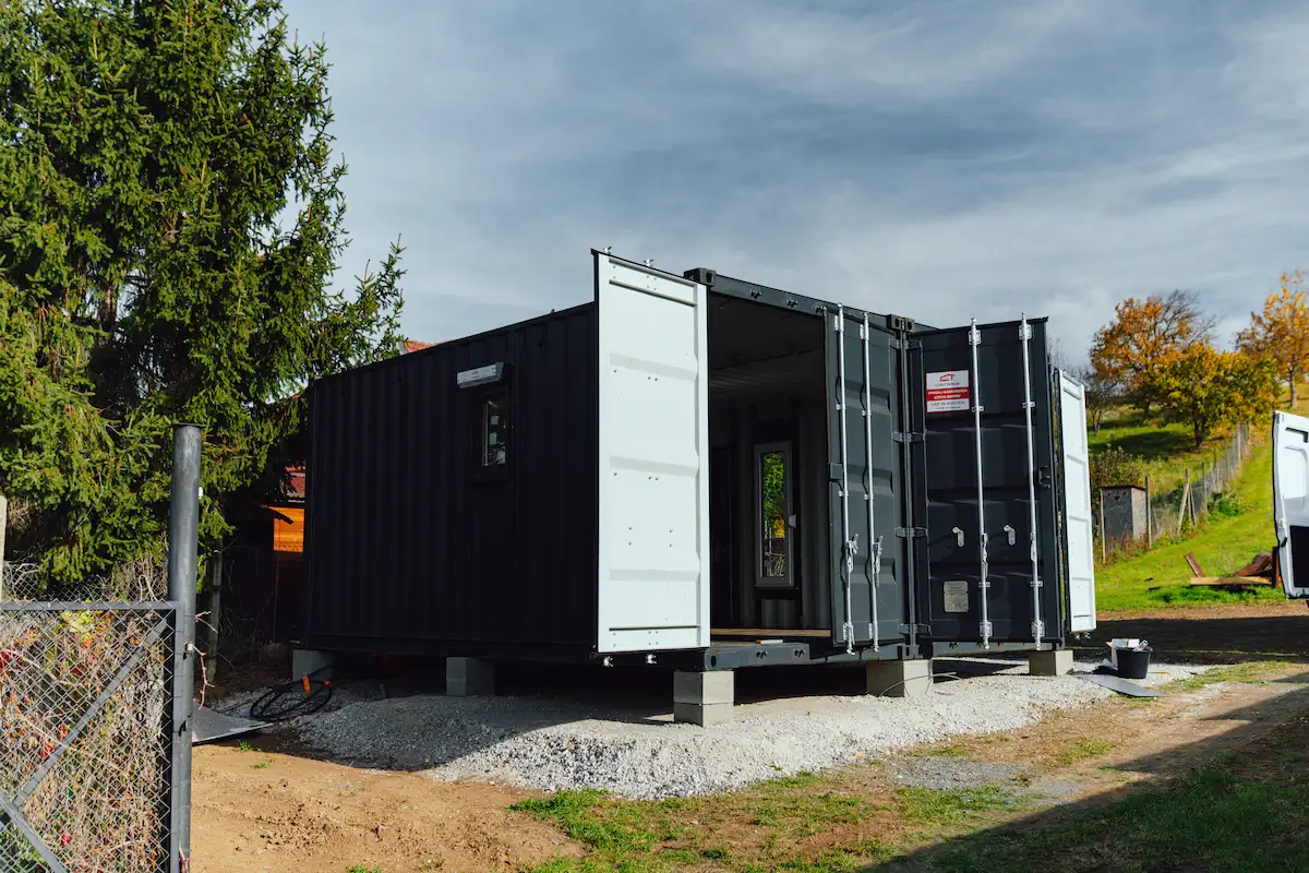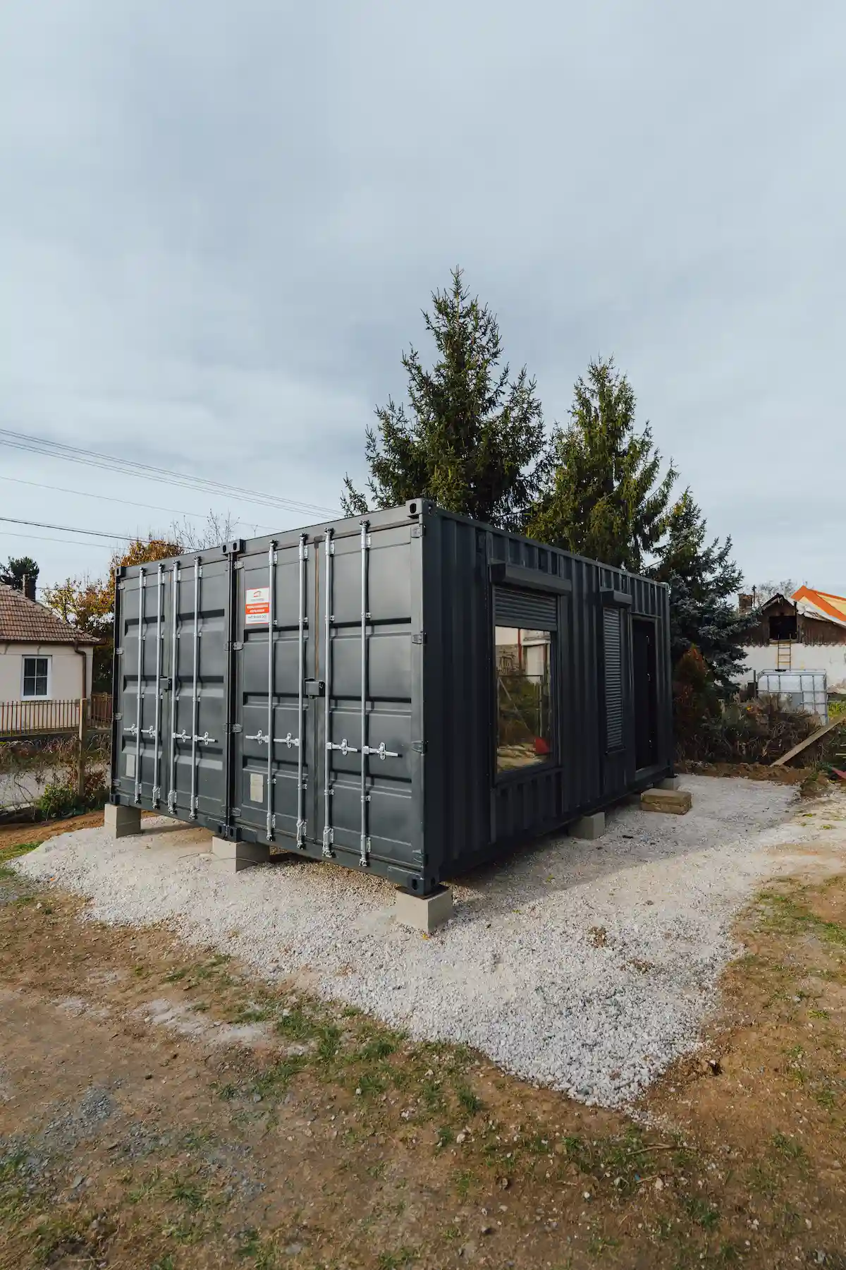Kontejnery byly doplněny o nová okna, dveře a připravené úchyty pro montáž sádrokartonu. Majitel tak může jednoduchým způsobem dokončit interiér a přizpůsobit si jej pro rekreační nebo pracovní využití.