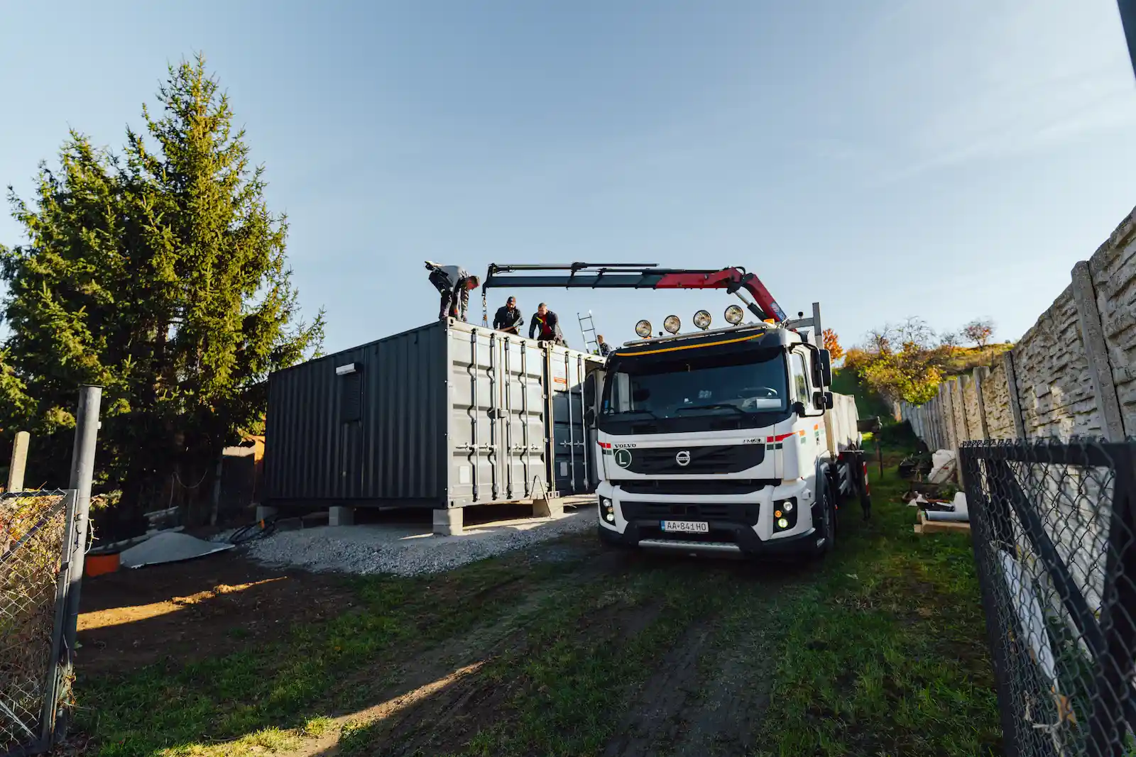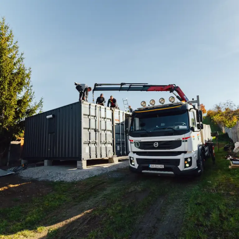 Výsledkem je pevná a stabilní konstrukce, která nabízí funkční prostor využitelný prakticky okamžitě po montáži. Celý proces – od dopravy, přes úpravy až po finální osazení – byl zrealizován během několika hodin.