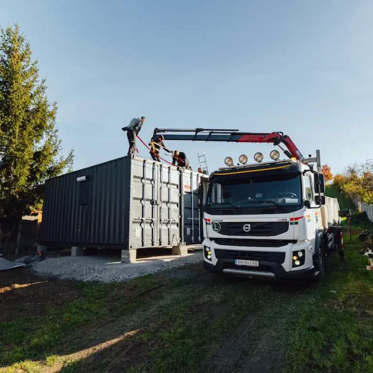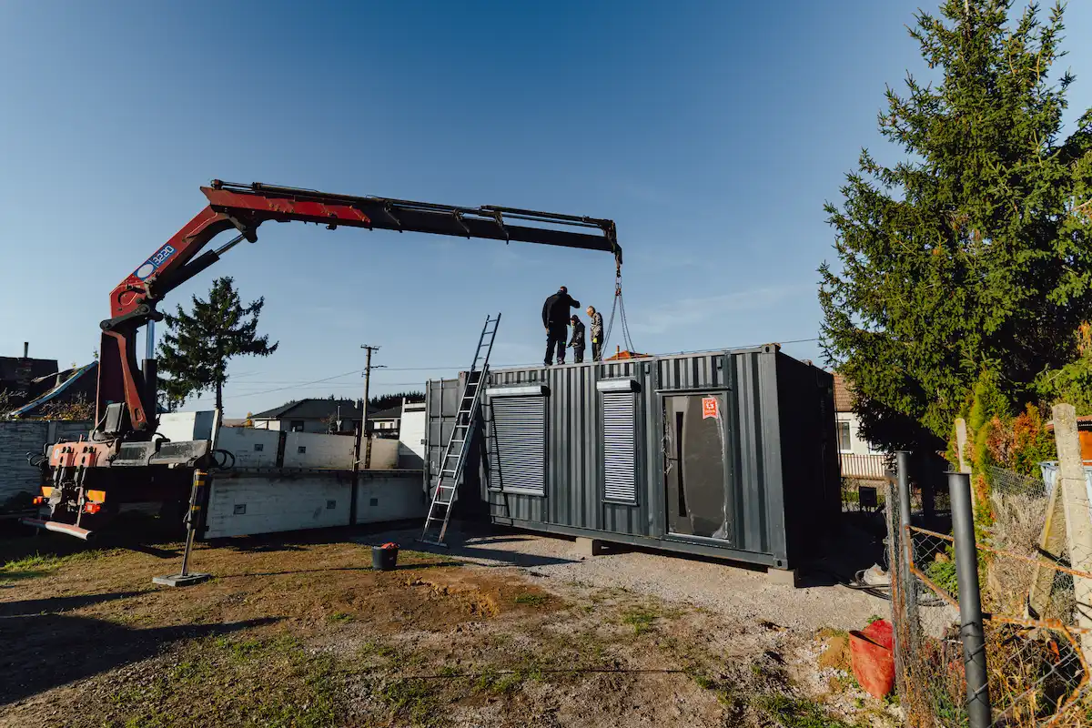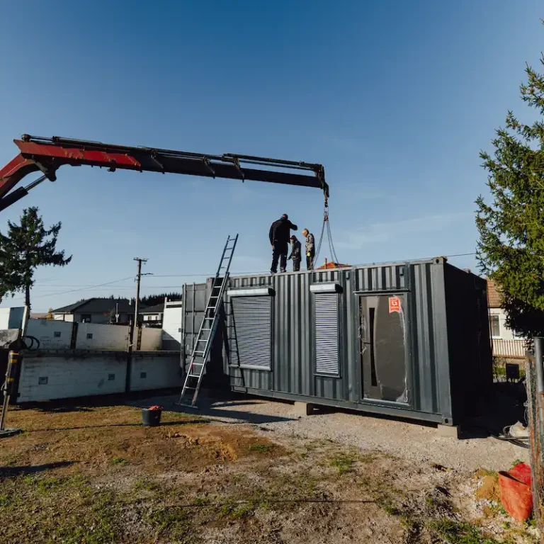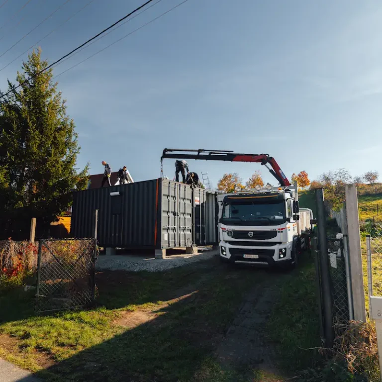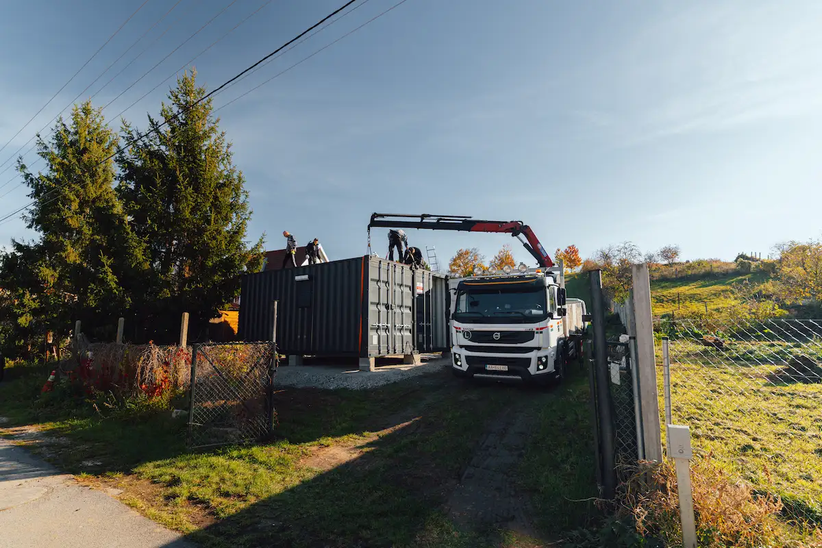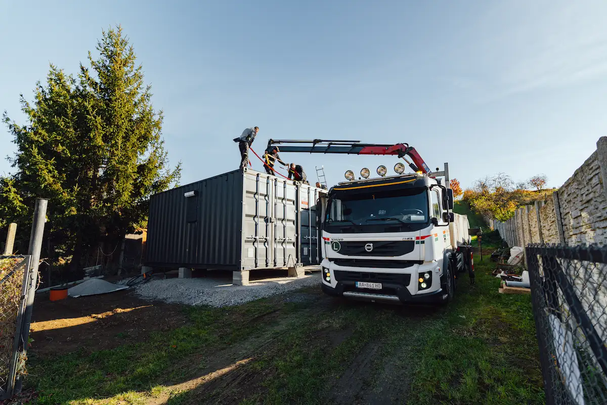 Po příjezdu na místo byly připraveny patky, což umožnilo okamžité osazení kontejnerů na své pozice. Následně se obě jednotky precizně zatěsnily a zavařily dohromady. Tento krok je zásadní pro zajištění odolnosti vůči dešti a minimalizování tepelných ztrát.